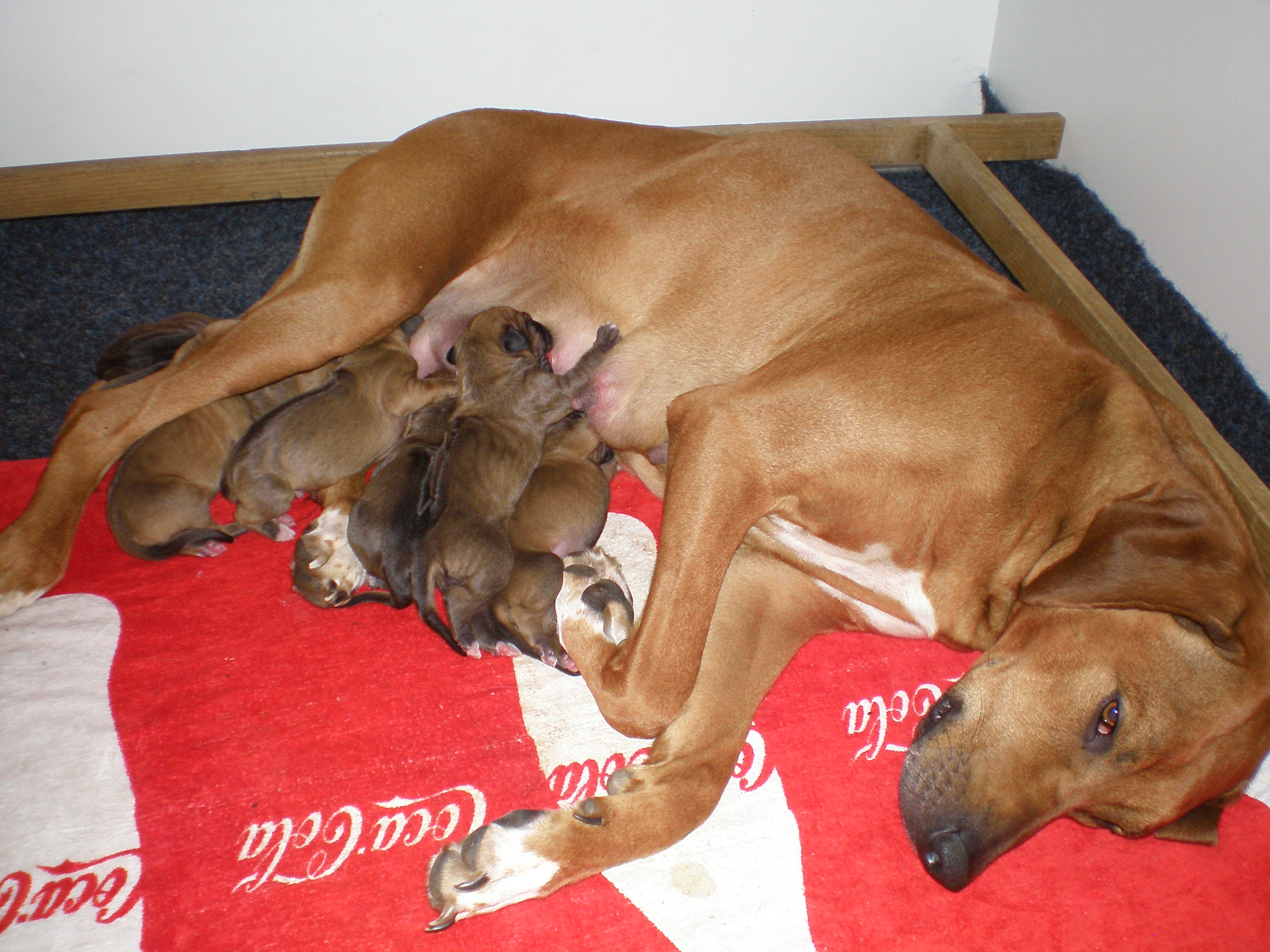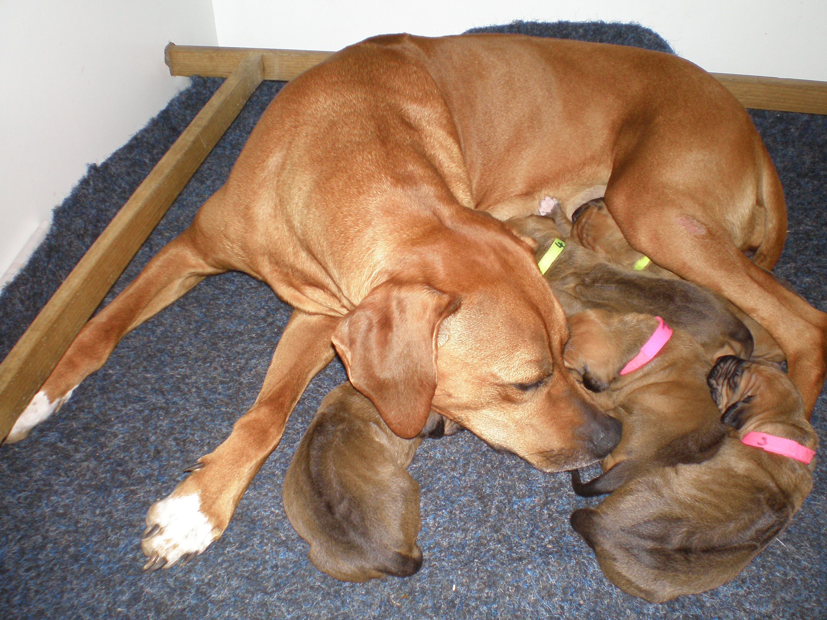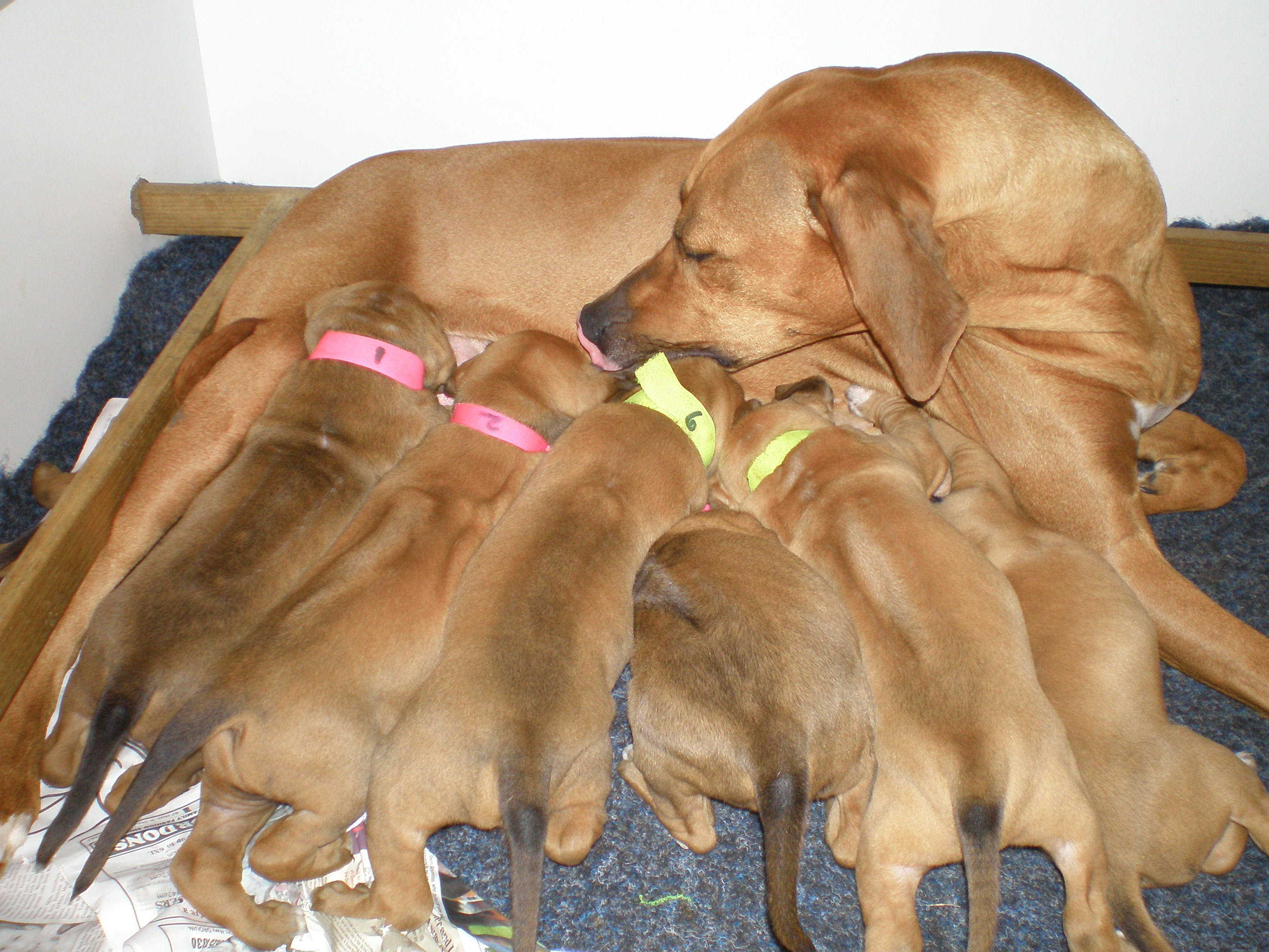 Update at 3 weeks of age: Eyes are open and they are walking. They’ve been wormed and nails cut. Hera has a lot of milk and pups are very fat! They now weigh 2.5-2.8kg (birth weight average was around 600g).
