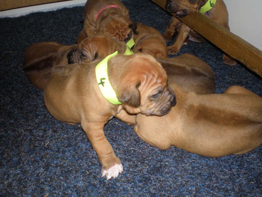 On September 19 2011, Hera whelped 7 puppies (3 bitches, 4 dogs). Dam: “Hera” (Jarracada Felicity), white feet; Sire: Ch. Usakose Voodoo Vandal.